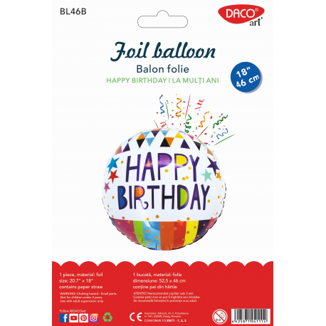 Balon din folie, Happy Birthday, 46cm, BL46F Daco