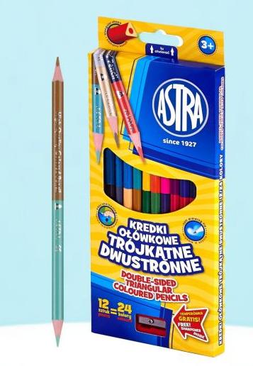 Creioane bicolor 24culori+ascutitoare, 12bucati/set, S312113001, Astra