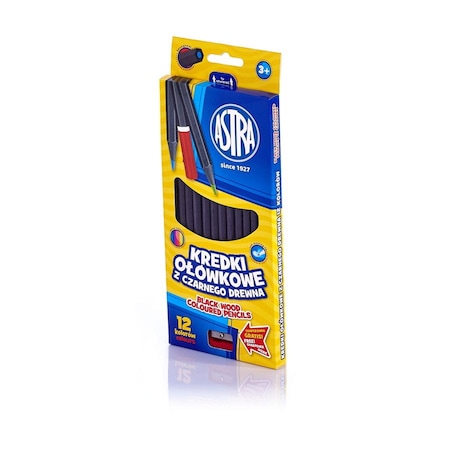 Creioane colorate 12culori/set+ ascutioare, lemn negru, S312114001 Astra