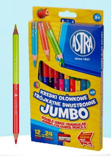 Creioane bicolor Jumbo 24culori+ascutitoare, 12bucati/set, S312118001, Astra