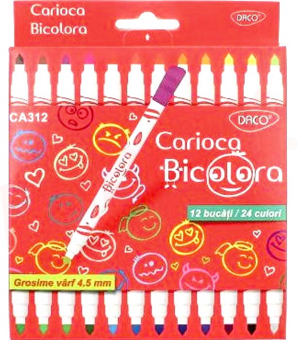 Carioca 2 varfuri, bicolor, 24culori, 12bucati/set Bicolora Daco CA312