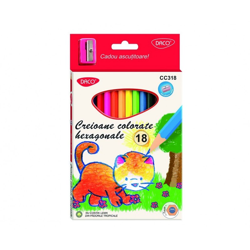 Creioane hexagonale colorate 18culori/set, Daco, CC318