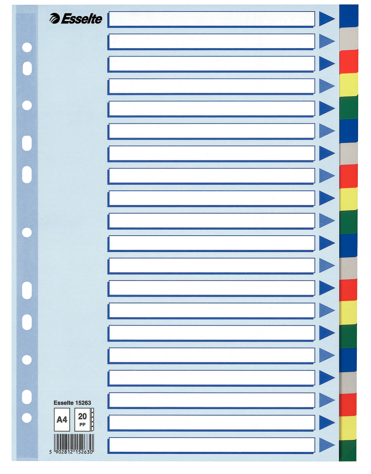 Separatoare plastic color 20/A4, Esselte