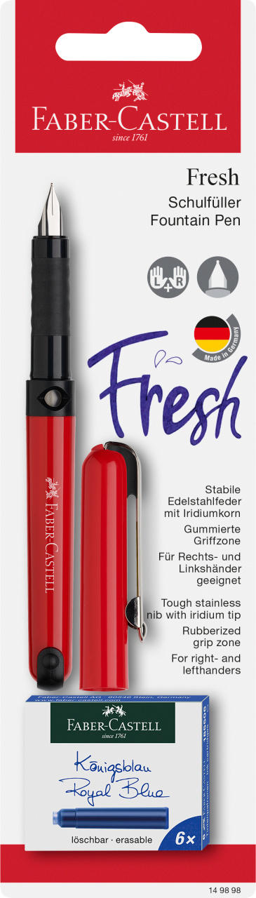 Set stilou plastic + 6 rezerve, corp rosu, Vario Faber Castell