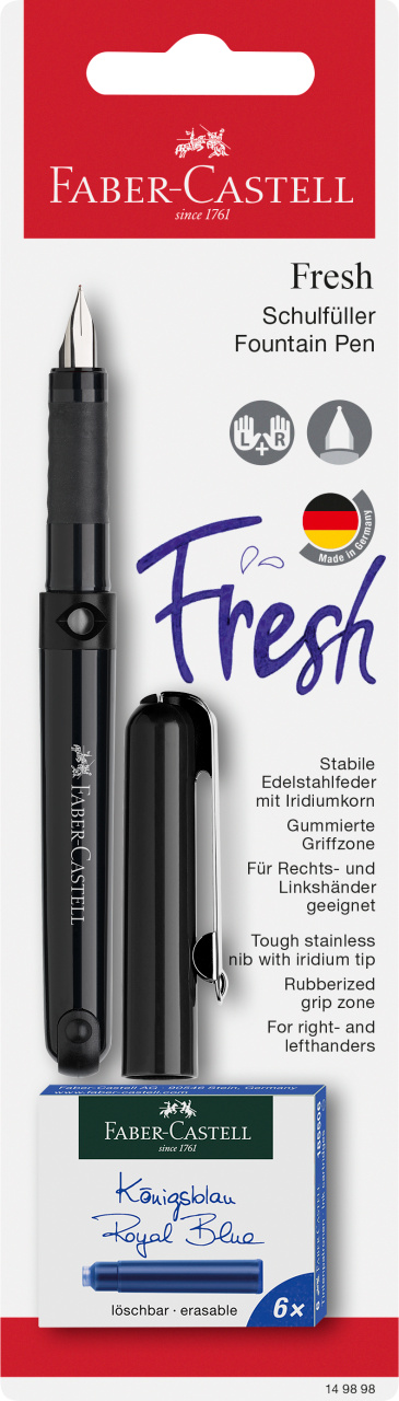 Set stilou plastic + 6 rezerve, corp negru, Vario Faber Castell