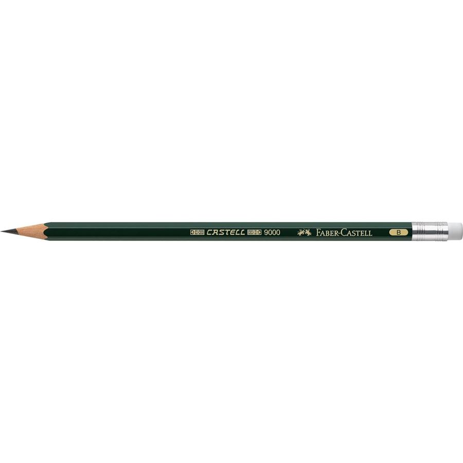 Creion grafit B, cu guma, Castell 9000, Faber Castell