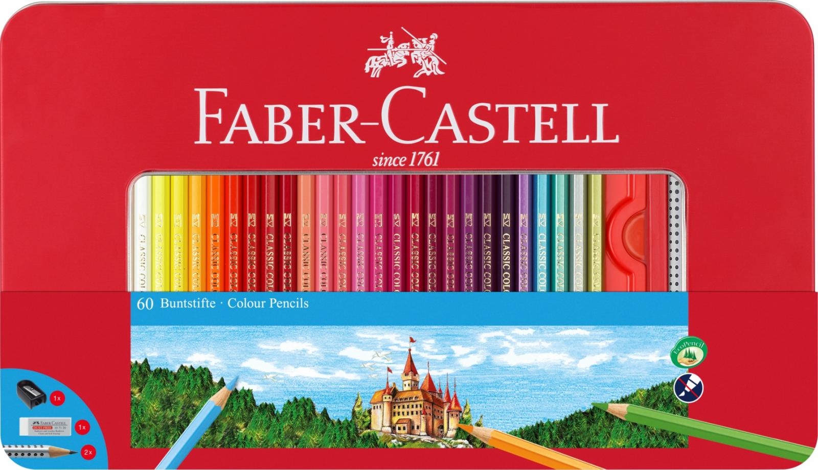 Creioane colorate in cutie metal 60culori/set, Faber Castell-FC115894