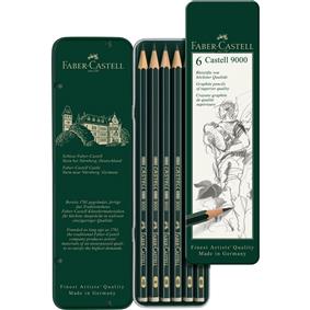 Creioane grafit, in cutie metal, 6 buc/set, Castell 9000, Faber Castell-FC119063