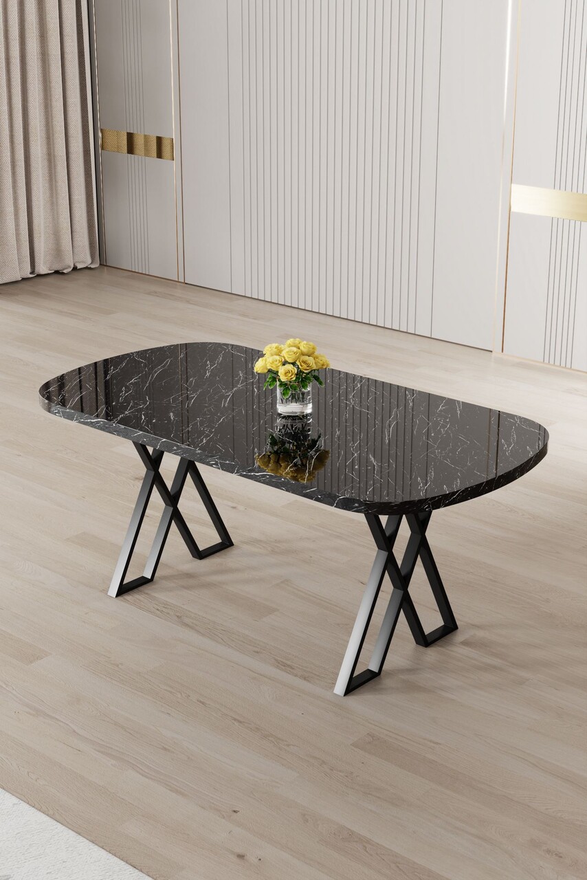 Masa, Hanah Home, Kaye, 168x76x90 cm, Marmură neagră / Negru