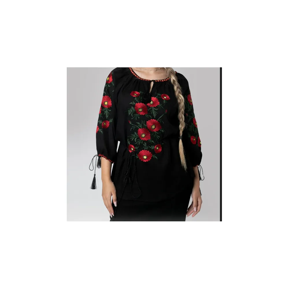 Bluza Tip Ie Neagra cu Motiv Floral Rosu - BMG02