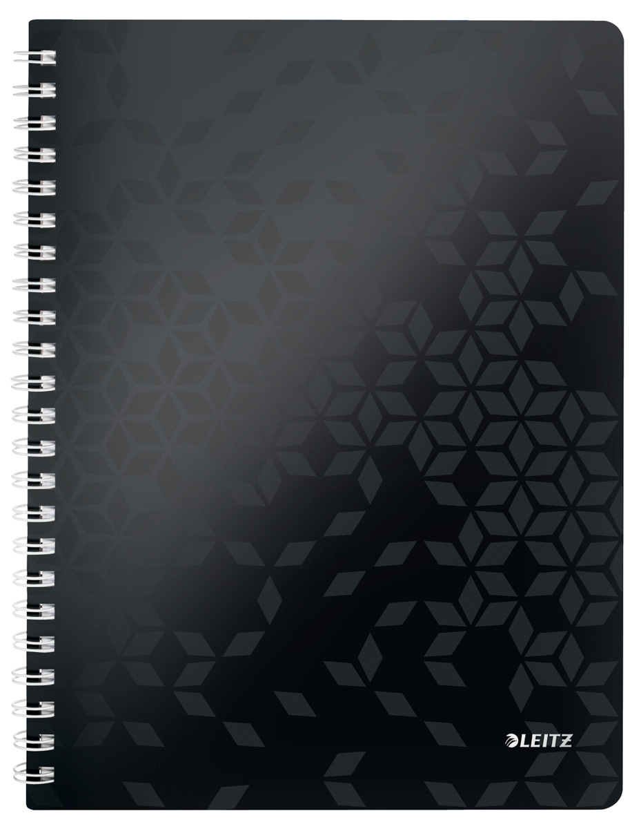 Caiet cu spira A4, 80file, dictando, coperta PP negru metalizat, Wow PP Leitz