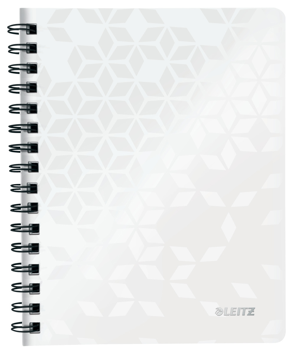 Caiet cu spira A5, 80file, dictando, coperta PP alb metalizat, Wow PP Leitz
