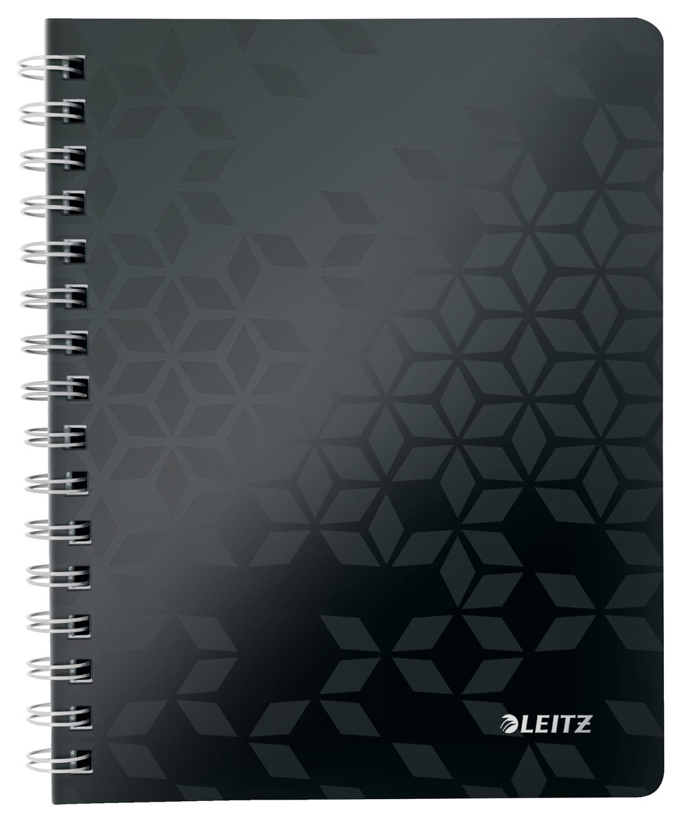 Caiet cu spira A5, 80file, dictando, coperta PP negru metalizat, Wow PP Leitz