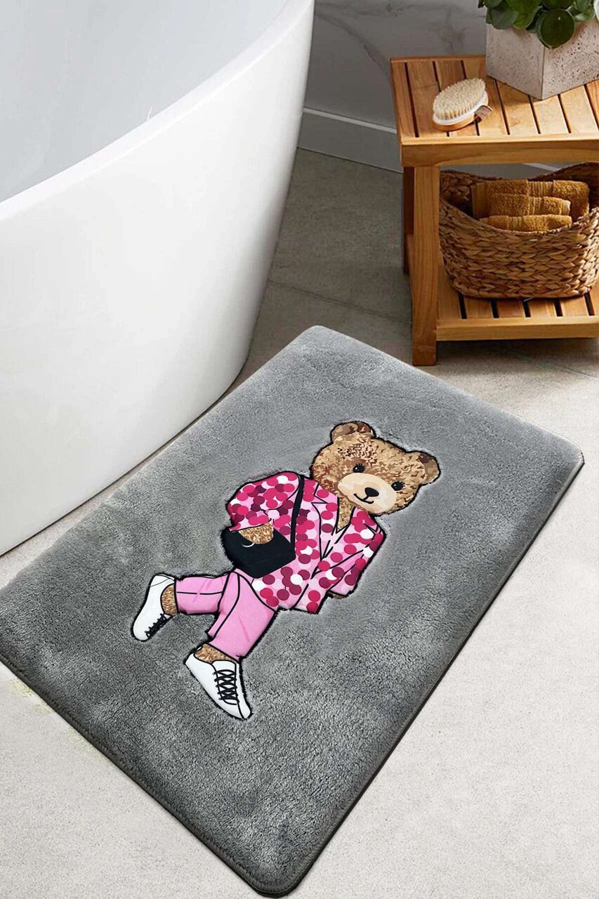 Covoras de baie, Lessentiel Maison, Boss Bear, 60x100 cm, Poliester, Fumuriu