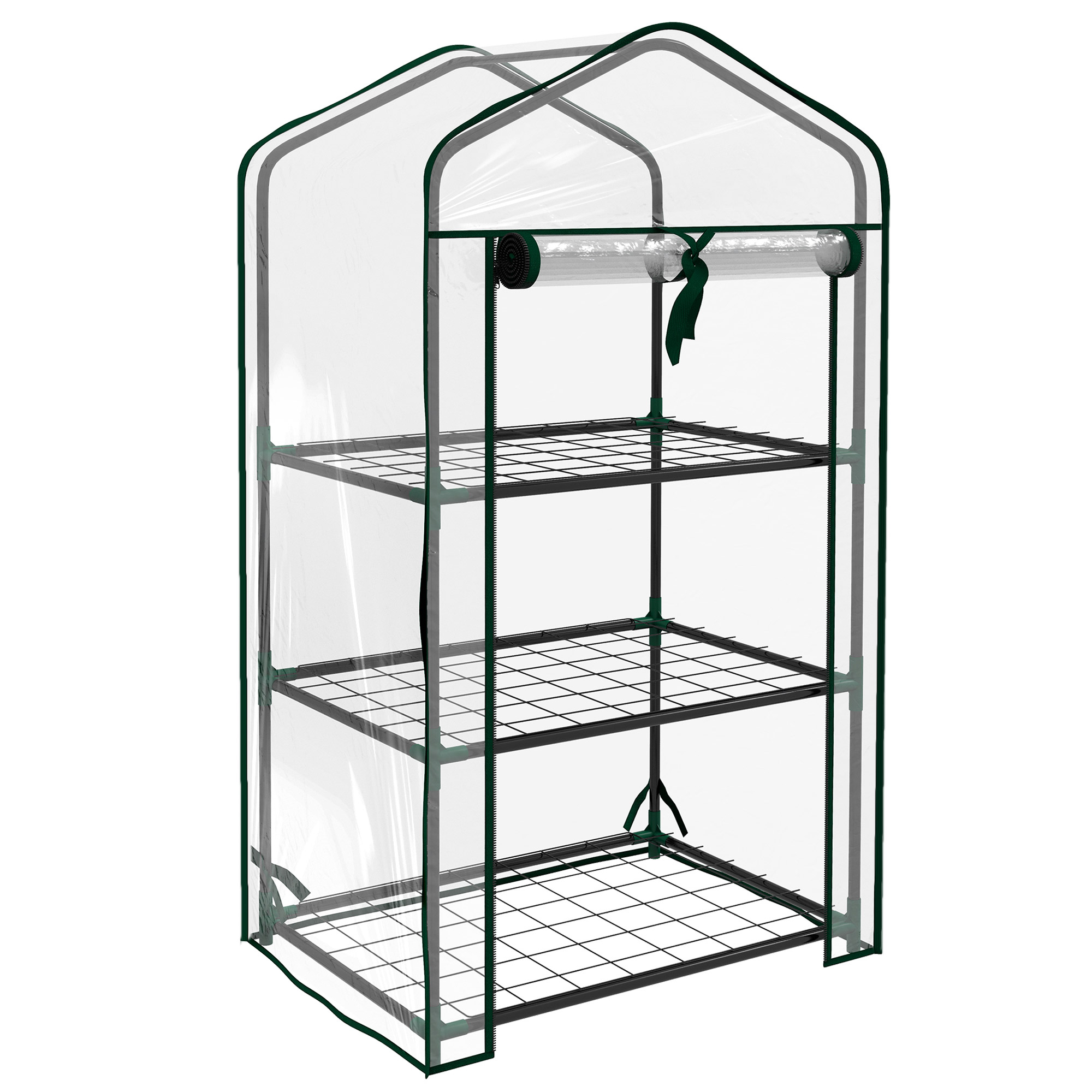 Outsunny Sera de Balcon cu 3 Niveluri și Ușă Rulantă, Sera pentru Grădină cu Structură din Oțel și Acoperiș din Plastic, pentru Plante, Flori, Fructe, 59x39x127 cm, Transparentă | Aosom Romania