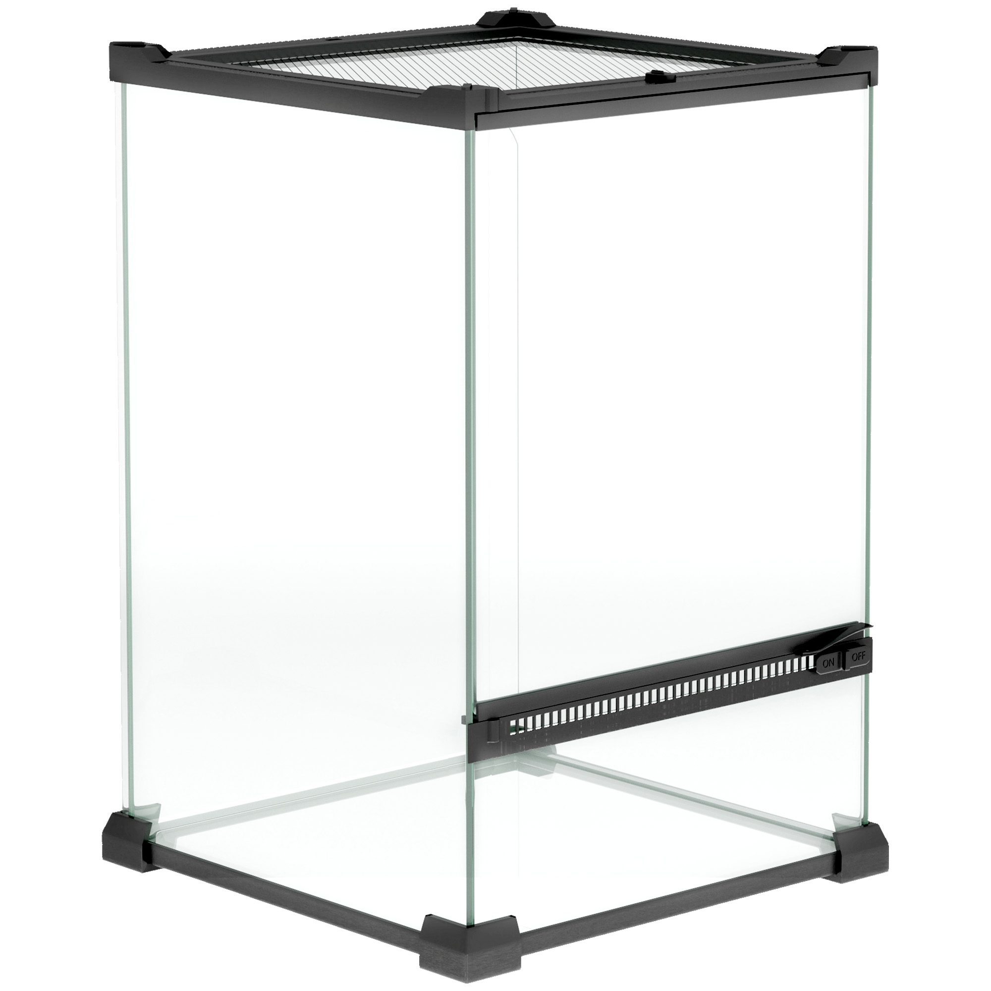 PawHut Terariu din sticlă pentru reptile vivariu 12 L cu capac din plasă metalică, 20 x 20 x 30 cm, negru | Aosom Romania