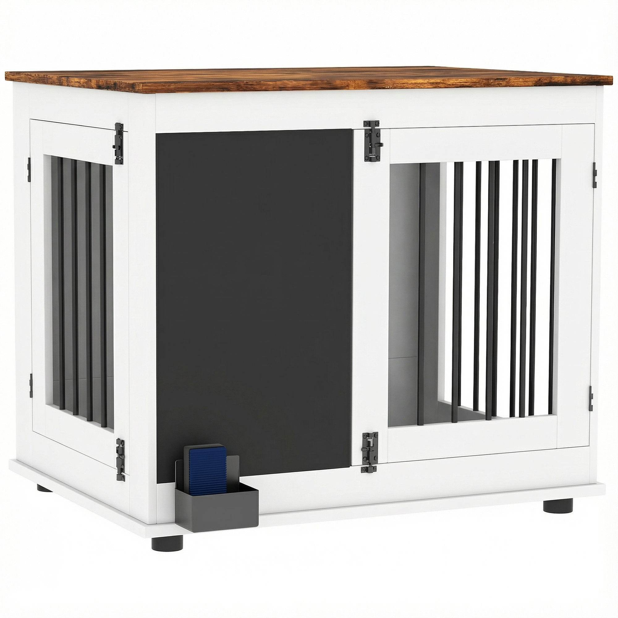 PawHut Cușcă pentru câine cușcă interioră cu 2 uși tablă neagră pentru câini talie medie 20 kg 80 x 60 x 70 cm alb | Aosom Romania