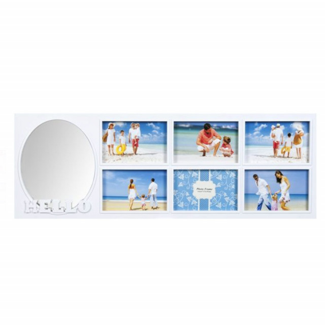Cadru rama foto Pufo Hello, 6 poze, 65 x 20 cm, alb