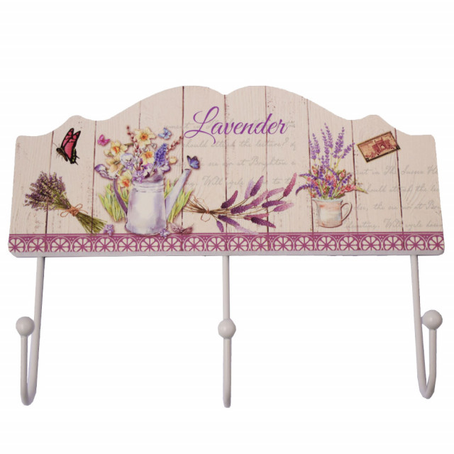 Cuier decorativ suport din lemn Pufo Lavanda pentru chei, 23 cm