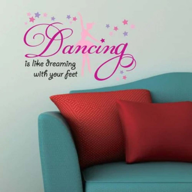 Autocolant sticker decorativ Pufo pentru perete cu mesaj, Pufo Ballerina Dancing, 50 x 32 cm