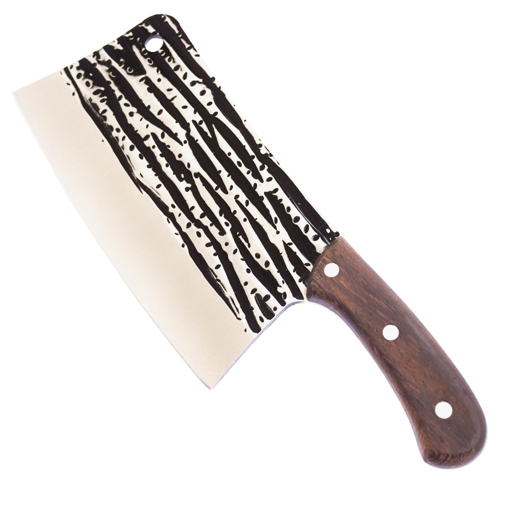 Satar macelarie Pufo Viking din otel gros si maner din lemn, 28 cm