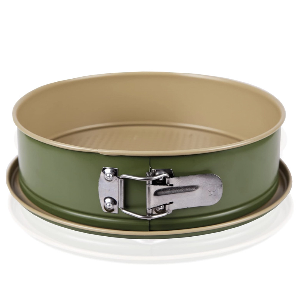 Tava metalica rotunda pentru copt prajituri, cu baza detasabila, verde