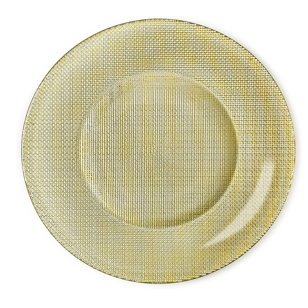 Farfurie eleganta din sticla Pufo Luxury pentru desert, aperitive, 31 cm, auriu