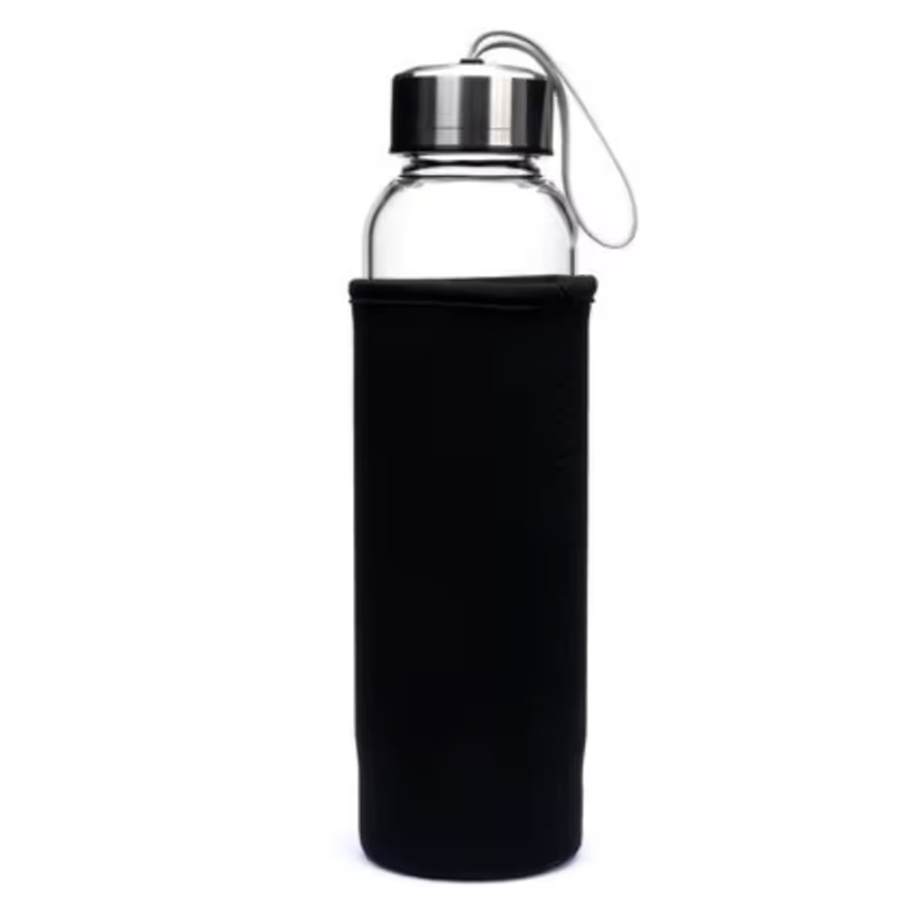 Sticla Pufo pentru apa sau lichide din material borosilicat, cu husa, capac etans, 500 ml
