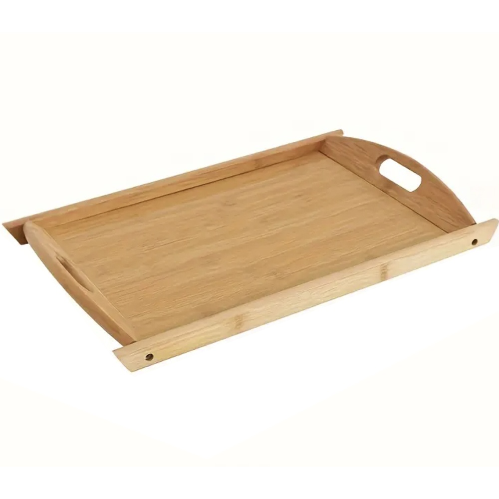 Tava Pufo Serve din lemn de bambus cu manere pentru servire, 51 cm, maro