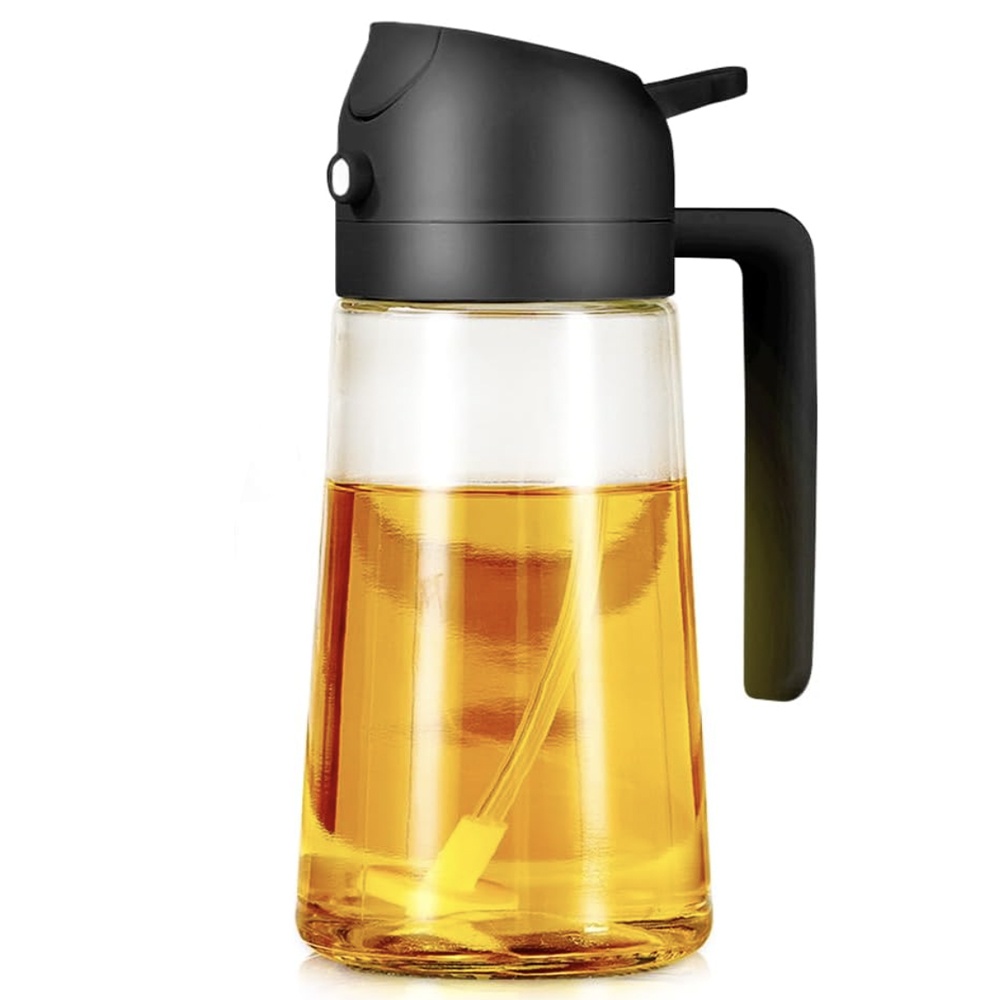 Recipient Pufo Splash din sticla pentru ulei si otet cu pulverizator, 420 ml, negru