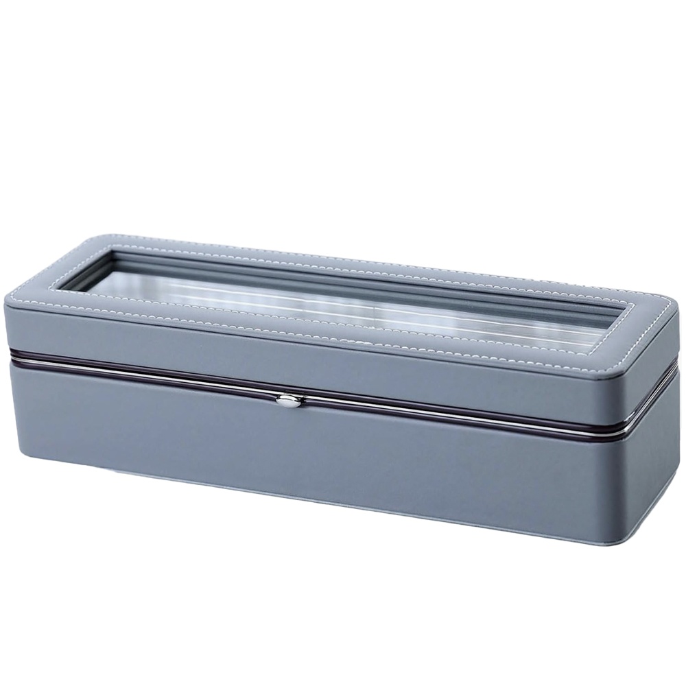 Cutie eleganta Pufo Gentleman pentru depozitare si organizare cu compartimente pentru 6 ceasuri, gri