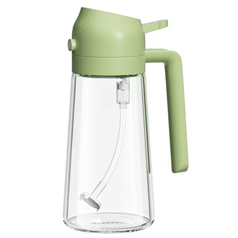 Recipient Pufo Splash din sticla pentru ulei si otet cu pulverizator, 420 ml, verde