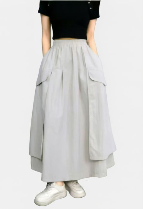 Fusta lunga ampla cu suprapuneri laterale, gri