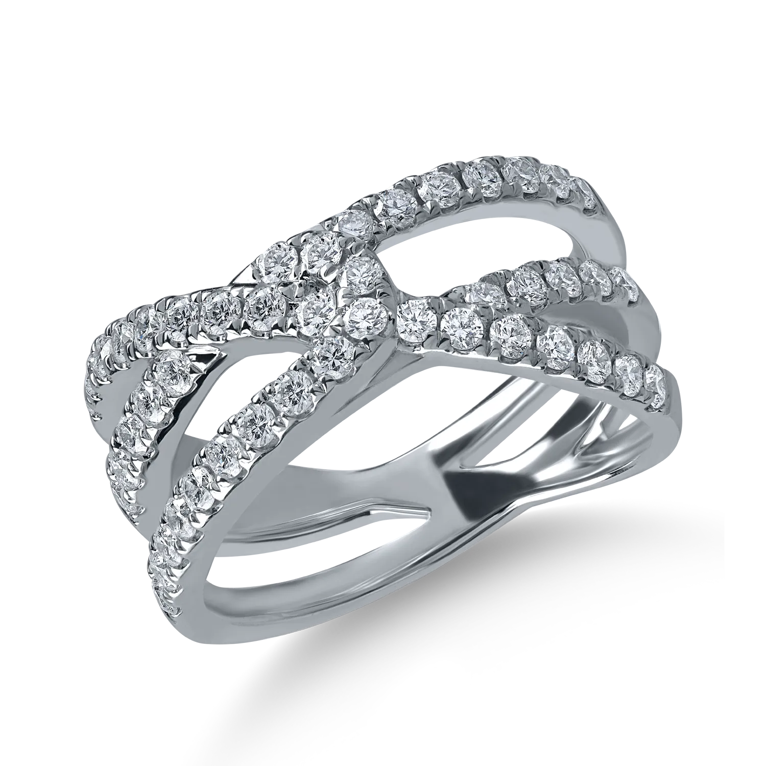 Inel geometric din aur alb cu diamante microsetting de 0.8ct