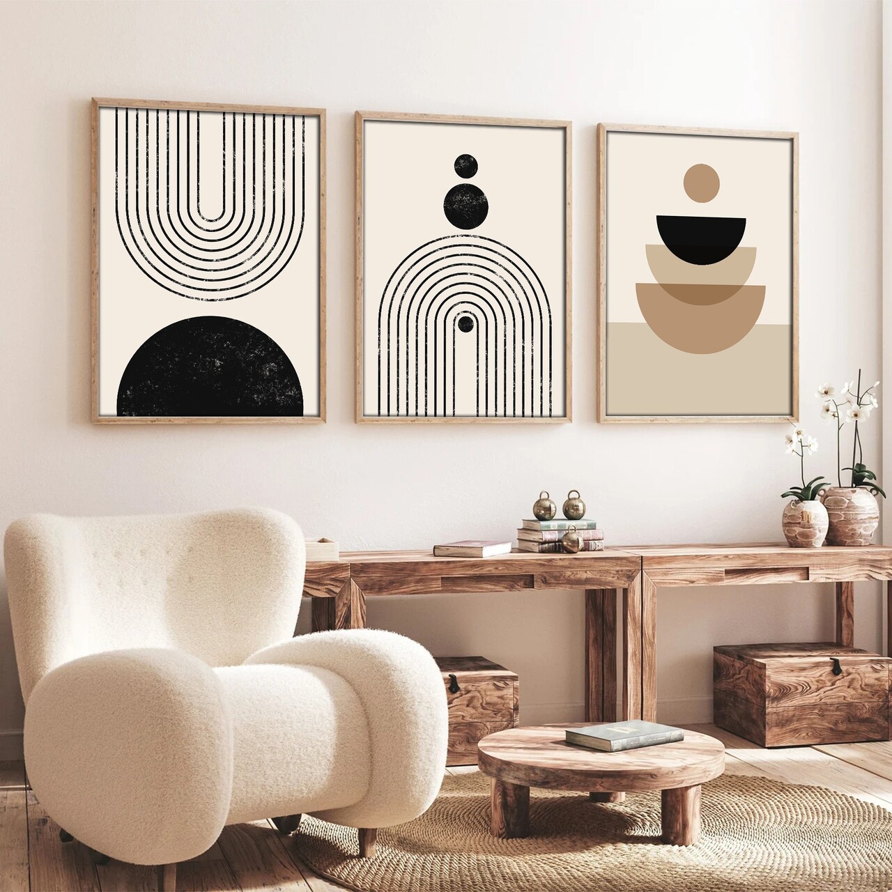 Set 3 tablouri decorative, Huhu100, Cadru: 100% LEMN MASIV (Grosime: 2,5 cm), Multicolor