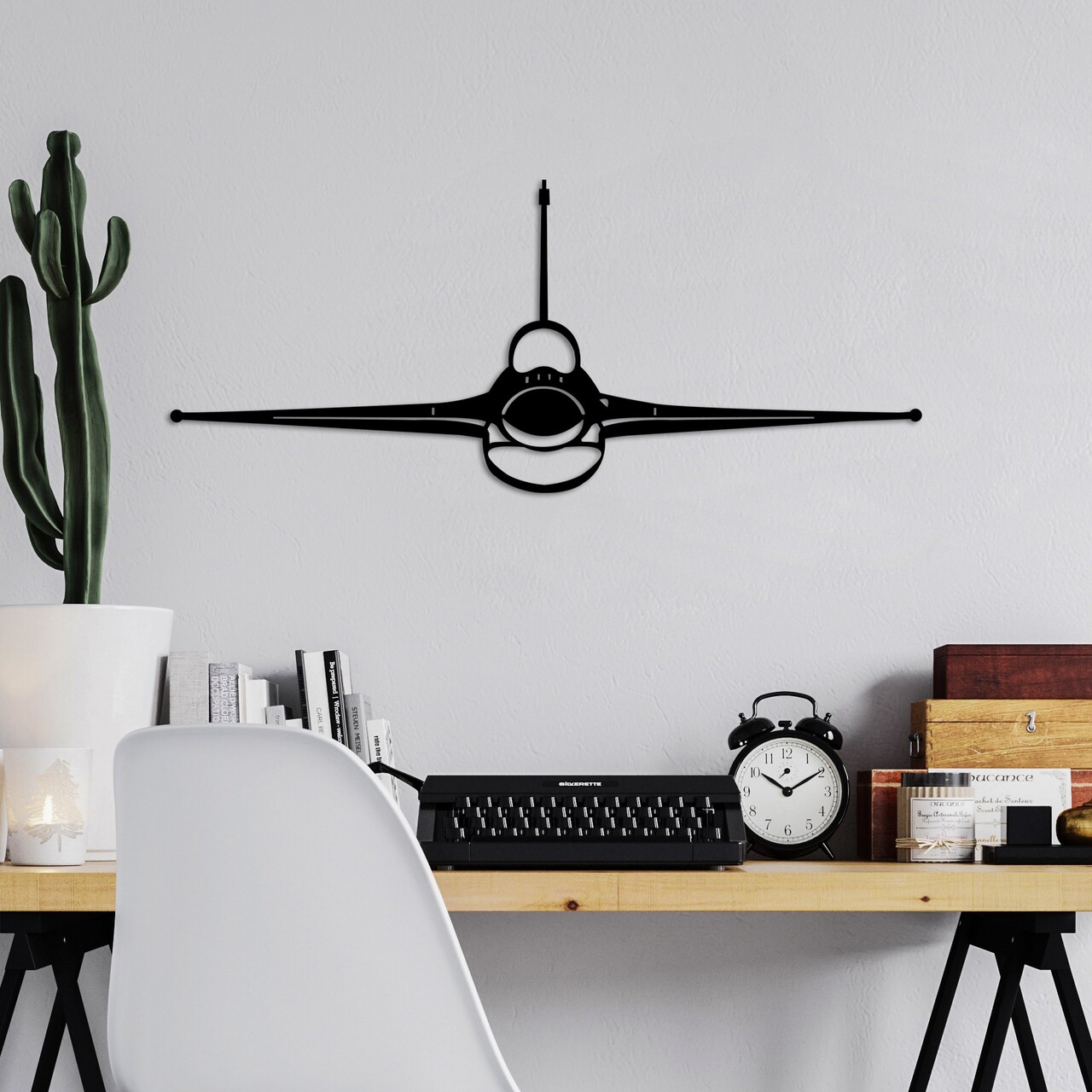 Decoratiune de perete, F-16 Jet Fighter, Dimensiune: 60 x 25 cm , Negru