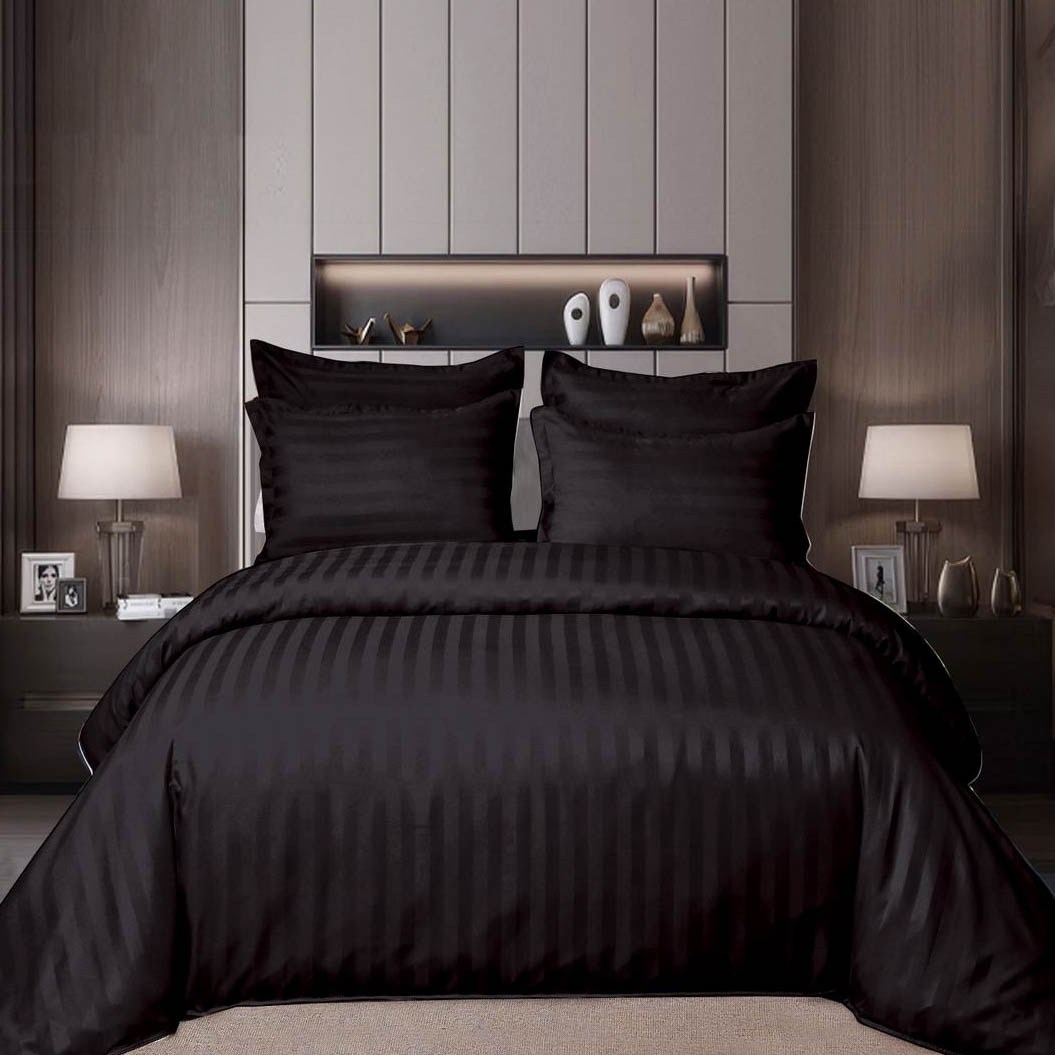 Lenjerie HoReCa, pat dublu, Damasc Finetat Deluxe cu Elastic, 6 piese, Pucioasa, Negru
