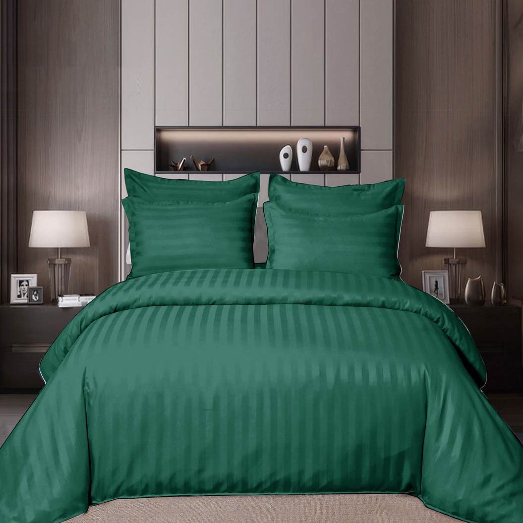 Lenjerie HoReCa, pat dublu, Damasc Finetat Deluxe cu Elastic, 6 piese, Pucioasa, Verde