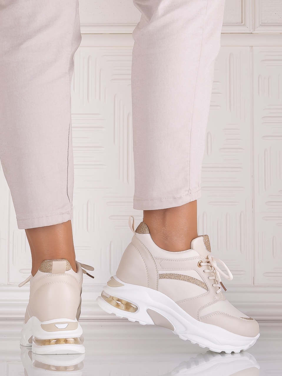 Sneakers dama cu platforma Bej din Piele Ecologica Tammara