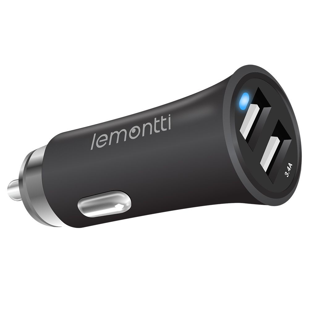 Incarcator auto, 2xUSB, 3.4A, negru, Lemontti
