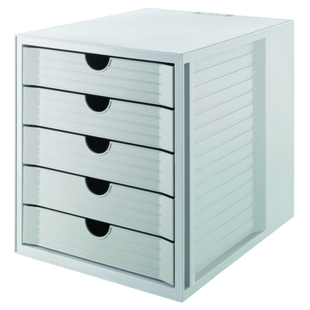 Suport plastic cu 5 sertare pentru documente, gri deschis, Han