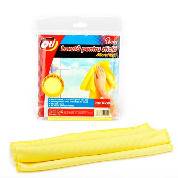 Laveta microfibra pt. geamuri, 30x30cm, galben, Oti