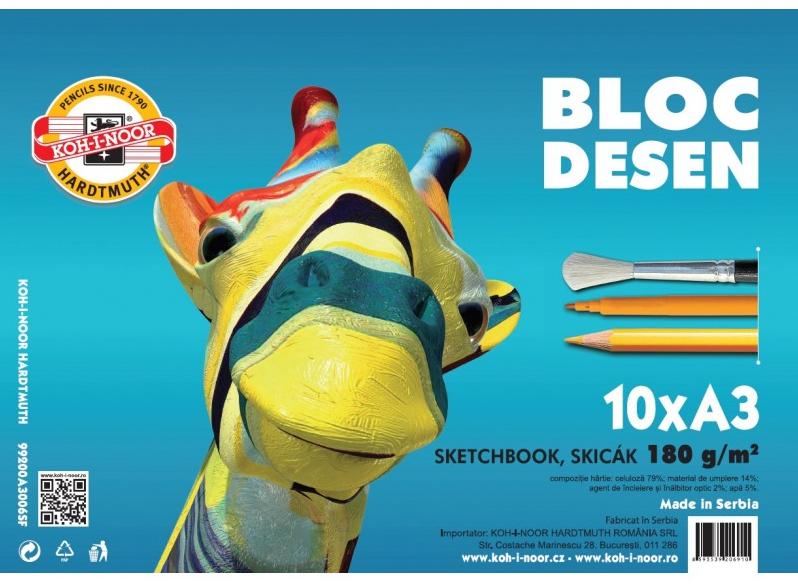 Bloc desen A3, 10file, 180g/mp Girafa Koh-I-Noor