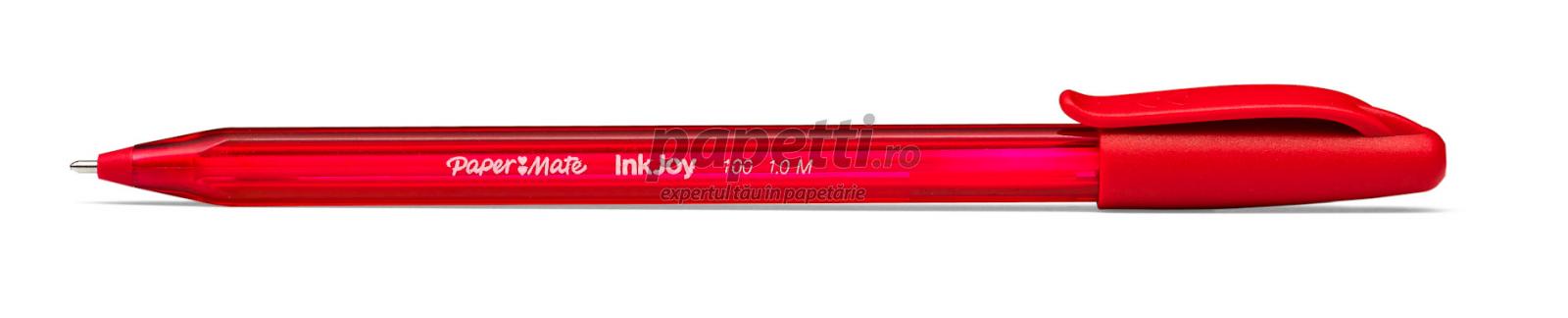 Pix semigel cu capac, rosu, corp rosu, varf 1,0mm, Papermate Inkjoy 100