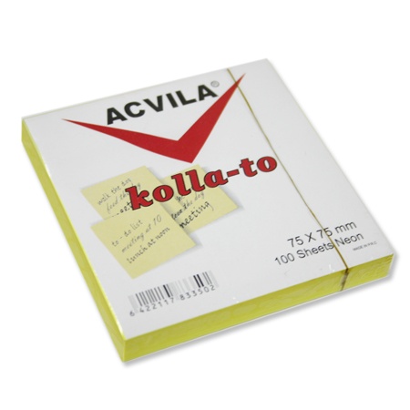 Notes autoadeziv 75mm x 75mm, 100 file/buc, galben neon, AC8335 Acvila