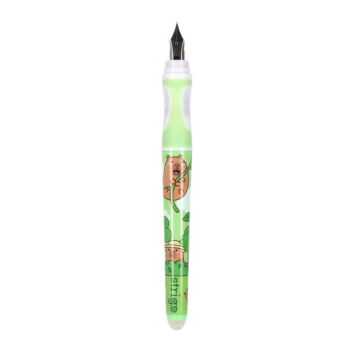 Stilou plastic cu cerneala termosensibila(se sterge) + dispozitiv curatare, verde, Seria Capybara, Strigo SSC509