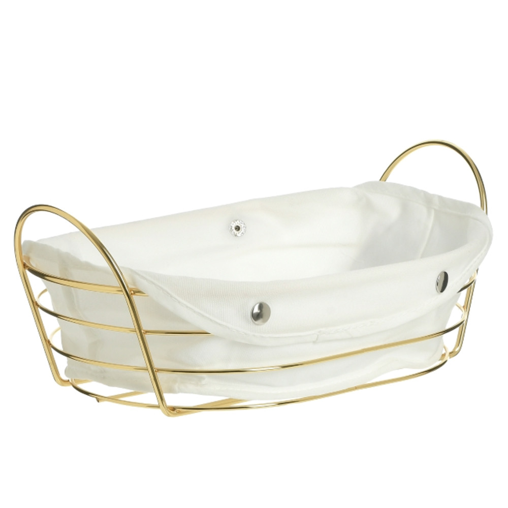 Cos metalic oval Pufo Luxury de bucatarie pentru servire paine, cu husa detasabila textila, 27 x 20 cm, auriu