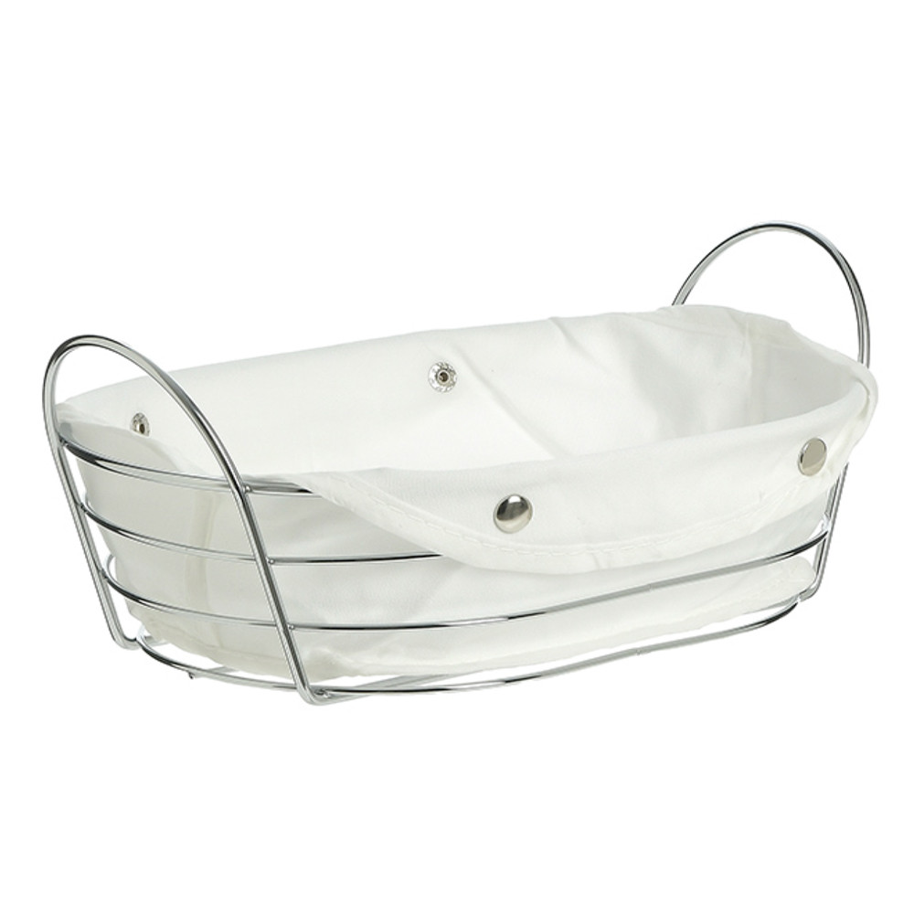 Cos metalic oval Pufo Luxury de bucatarie pentru servire paine, cu husa detasabila textila, 27 x 20 cm, argintiu