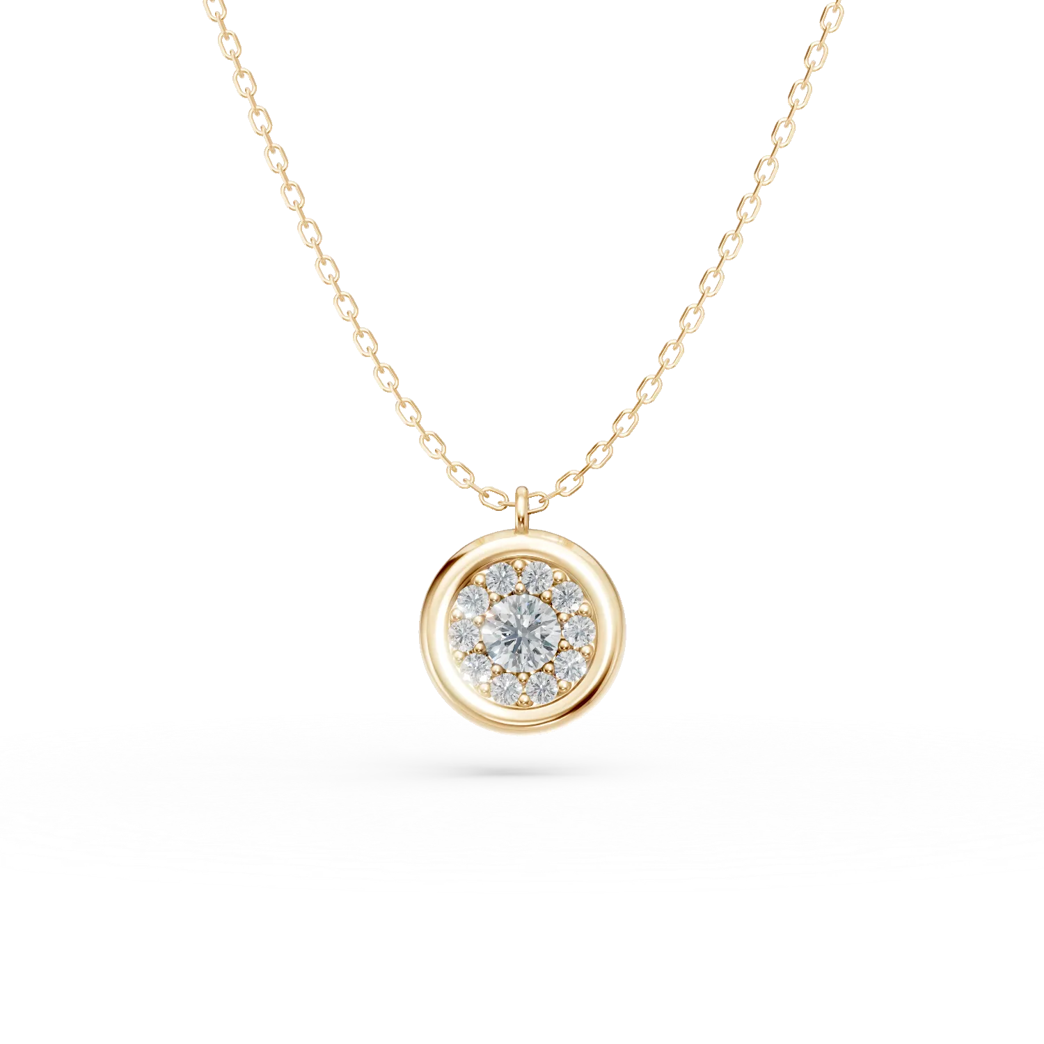Lant cu pandantiv rotund din aur galben cu zirconii