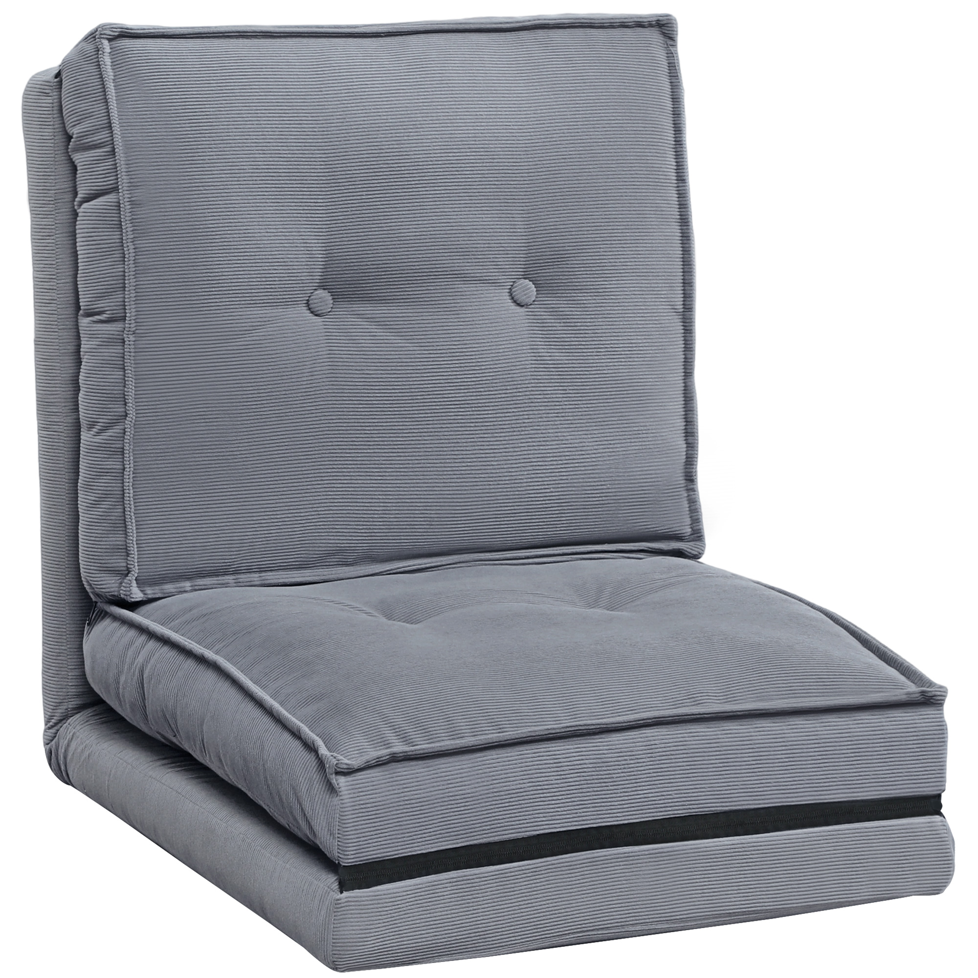 HOMCOM Fotoliu de podea pliabil din velur canaletat, saltea pentru podea cu spătar reglabil în 5 poziții, 59 x 230 x 15 cm, gri | Aosom Romania
